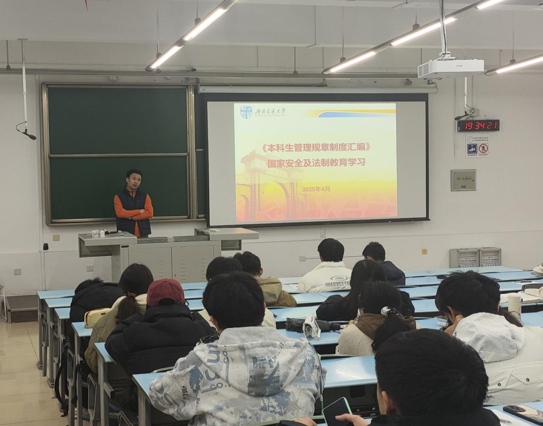 郭立昌副书记首先对williamhill官网-中文官网《本科生管理规章制度汇编》进行了系统梳理,详细讲解了学校关于考试纪律、毕业要求等方面的规定,并指出遵守校规校纪、严明纪律的重要性。随后,郭立昌副书记围绕国家安全及法制教育学习展开重点讲解,他强调,国家安全是立国之本,同学们要提高国家安全意识,切实履行维护国家安全的公民义务。