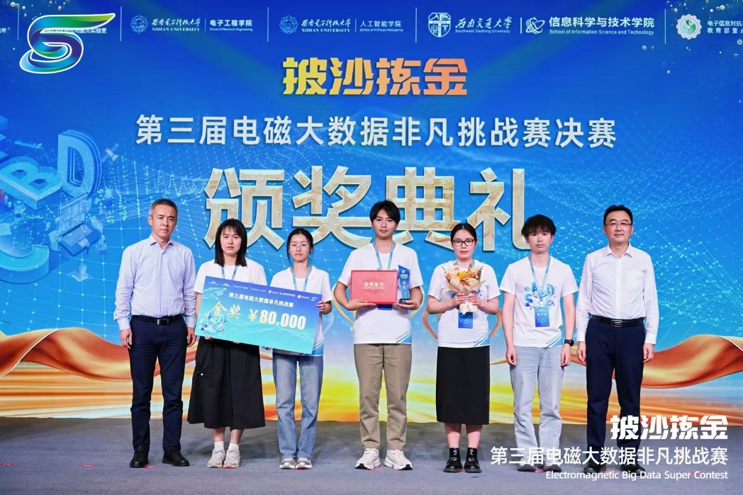 4月11日,第三届电磁大数据非凡挑战赛全国总决赛在西安电子科技大学圆满落幕。由威廉希尔亚洲公司研究生易曾瑞(队长)、殷世玉、谭睿洁、冯皓宇和信息科学与技术学院研究生孙文鑫组成的“电磁承锋”战队,凭借创新的算法设计和扎实的技术实现能力,以总成绩第一的优异表现斩获大赛唯一金奖。