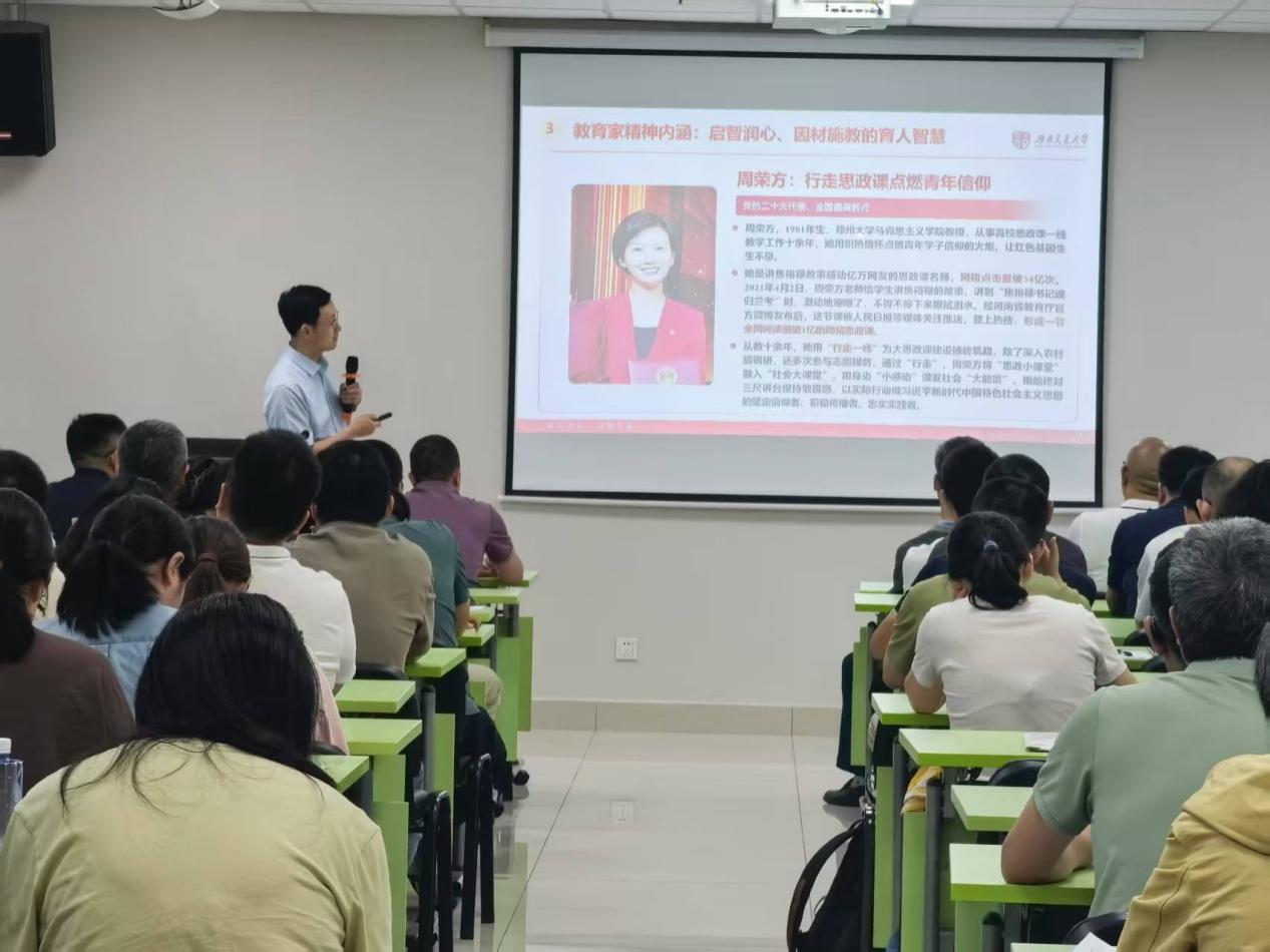 会议邀请williamhill官网-中文官网弘扬教育家精神宣讲团成员,地球科学与工程学院党委副书记、纪委书记郑波作题为“大力弘扬教育家精神、争做新时代大先生”的专题报告。郑波从追求师德“高线”,自觉践行教育家精神;守住师德“标线”,以十项准则规范行为;远离师德“红线”,以案为鉴,警钟长鸣三个方面,就教育家精神的内涵、新时代高校教师职业行为十项准则、师德师风警示教育进行了深入解读。
