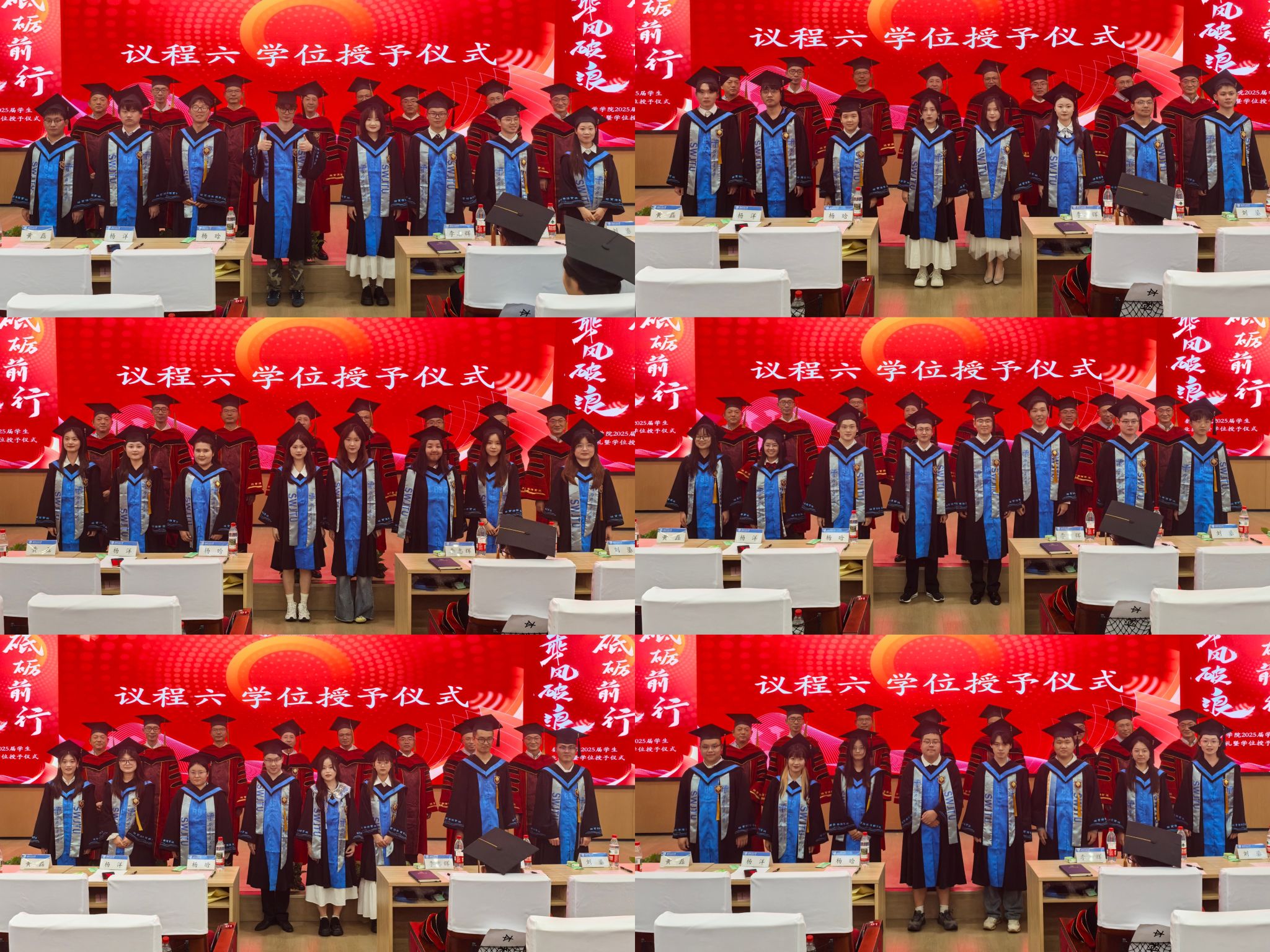 学位授予仪式上,2025届毕业生们依次登台,学术分委会导师代表为他们扶正流苏,祝贺圆满完成学业,从此展翅翱翔。