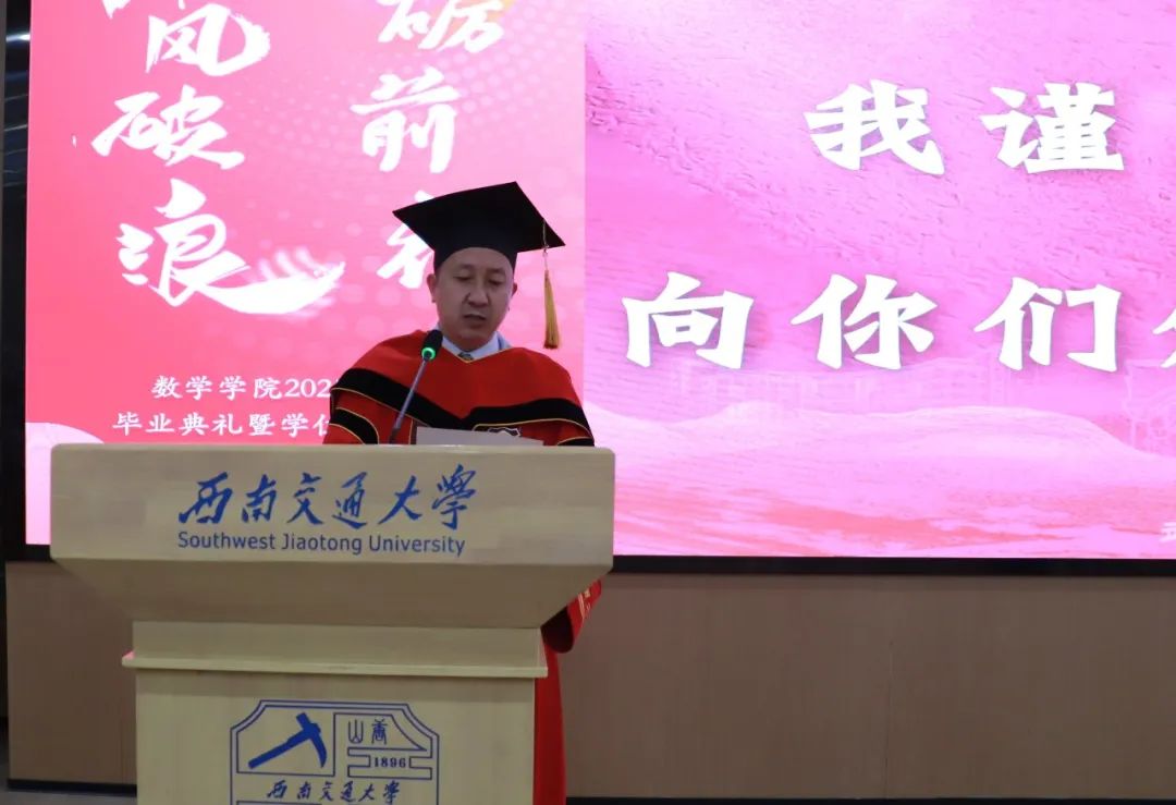最后,杨晗对毕业生提出殷切期望:在混沌系统中寻找吸引子,在随机游走中创造马尔科夫链,愿同学们的生命如非欧几何,在曲率变换中保持内在度量不变。
